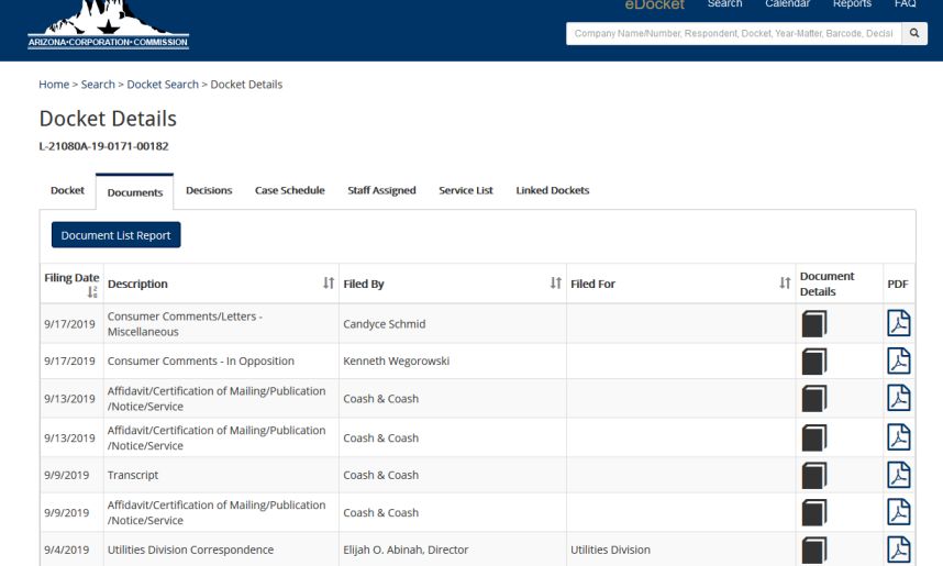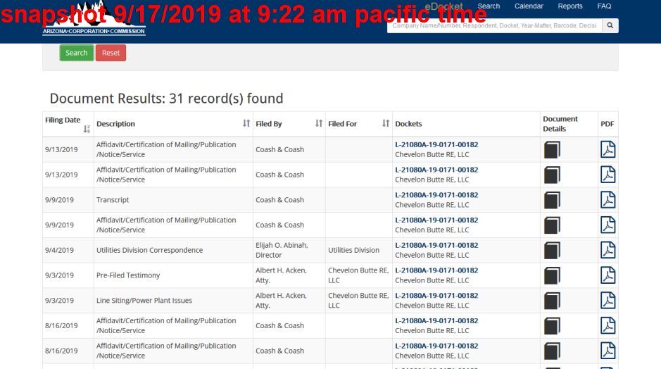 The following comment of Kenneth Wegorowski further down this page was not posted on the AZCC.gov website as of 9/17/2019 at 8:27 am pacific time. I feel public comments should be available for anyone interested in knowing the opinions of others to be able to be informed during hearings whereas hearings still allow public comment and discussion to be made so I am posting my comment below.